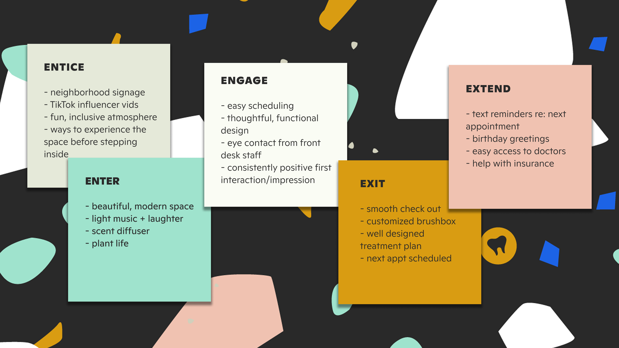 Five years ago, we landed our first client project: experience design for a Chicago-based dental practice with a huge TikTok following. Let us tell you how the 5Es, one of our favorite journey mapping exercises, helped us prepare Dentologie to scale.