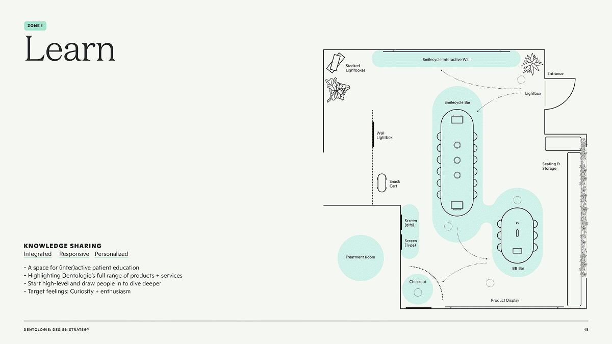 With a strong sense of our core values and audience, we got to work parsing the great ideas from the good ones. We took stock of existing resources and creative constraints. Together, we designed a flexible, scalable blueprint for every Dentologie office.